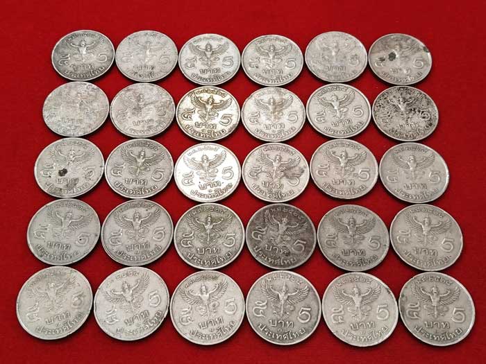 วัดใจ 100 เดียวแดง ++ เหรียญ 5 บาท หลังครุฑพ่าห์ ปี2525 สภาพผ่านใช้งาน รวม 30 เหรียญ