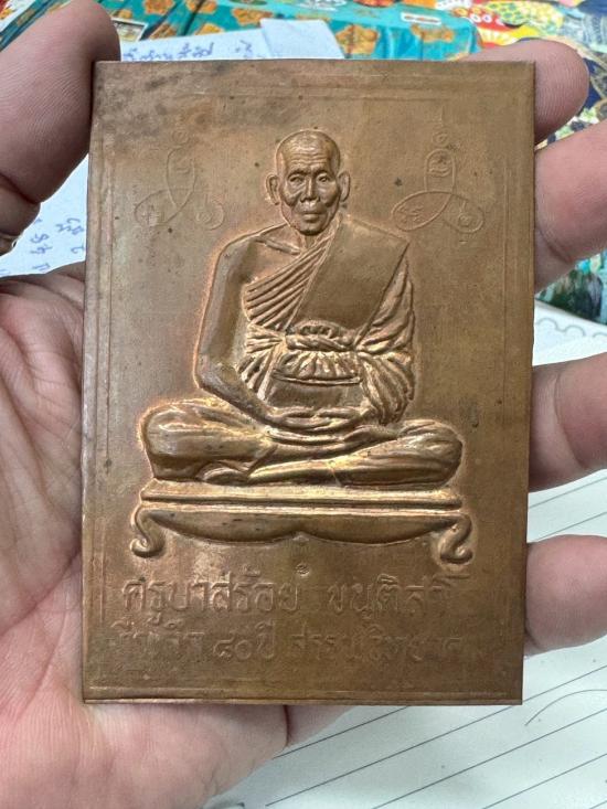 ครูบาสร้อย ขันติสาโร แผ่นปั้มทองแดงรูปเหมือนขนาดบูชา รุ่นที่ระลึก ๘๐ ปี สรรพวิทยา