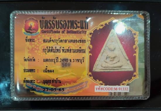 เคาะเดียวแดง พระสมเด็จ กรุวัดกลางคลองข่อย กรุใต้ต้นโพธื์ พิมพ์สามเหลี่ยมแตกกรุปี2490 จ.ราชบุรี