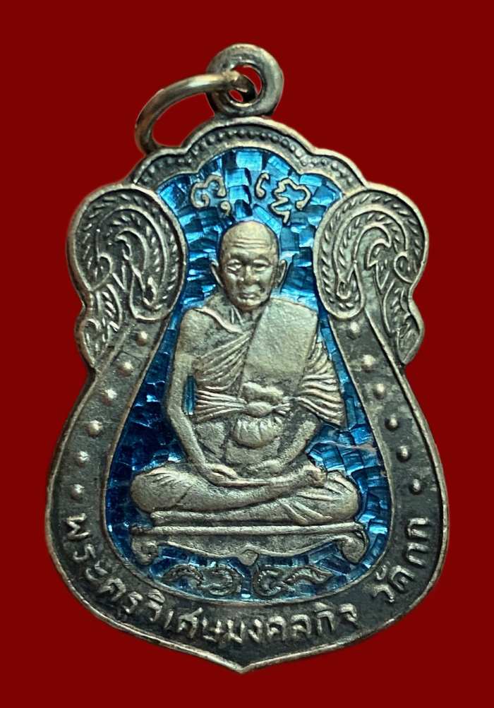 เหรียญหลวงพ่อมิ่ง วัดกก กรุงเทพ รุ่นบูรณะอุโบสถ เนื้อเงินลงยาสีฟ้า สวย ตอกโค๊ต ปี 2537