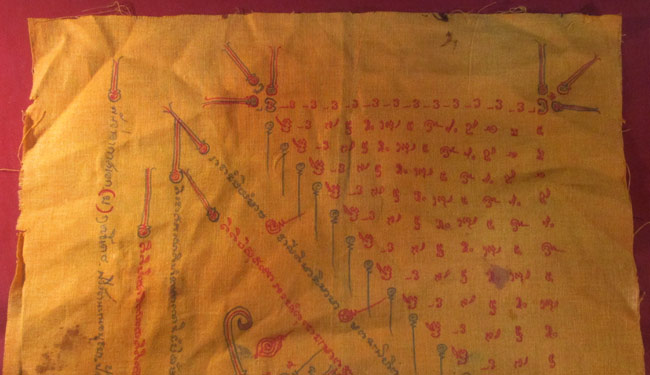 ผ้ายันต์ ไม่ทราบที่ จารยันต์ด้วยมือ ครับ