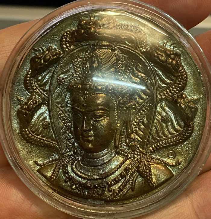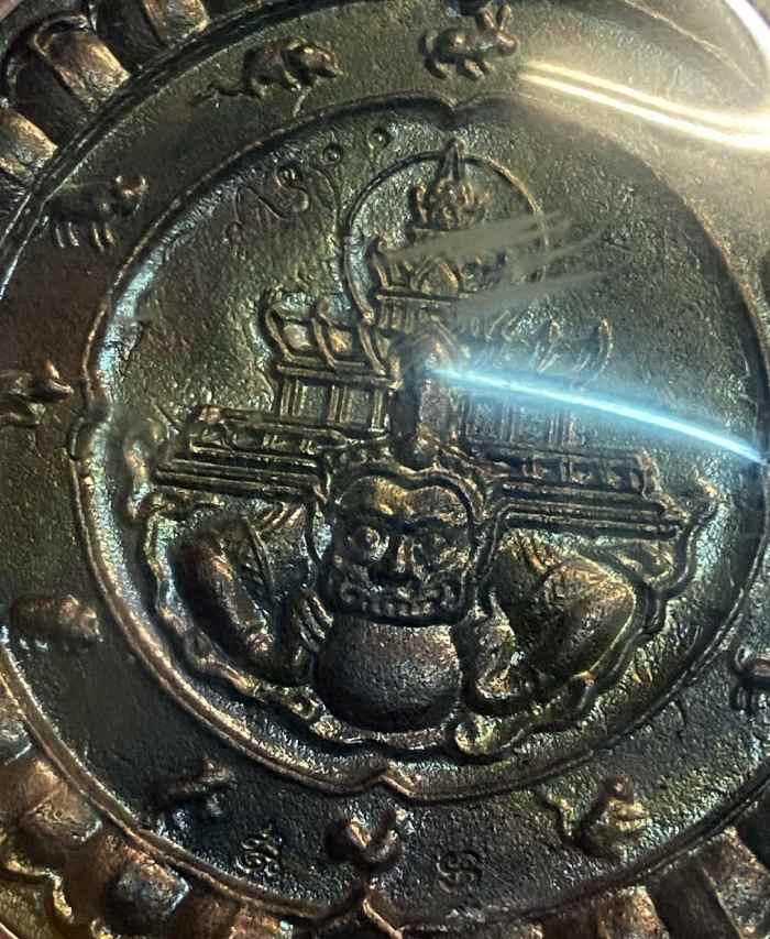 เหรียญบาตรน้ำมนต์ จตุคาม รามเทพ รุ่นราชันย์ดำ วัดใหญ่ชัยมงคล จ.นครศรีธรรมราช เนื้อทองแดงเทวฤทธิ์ ขนาด 5.2 เซน หมายเลข 300 ปี 2550