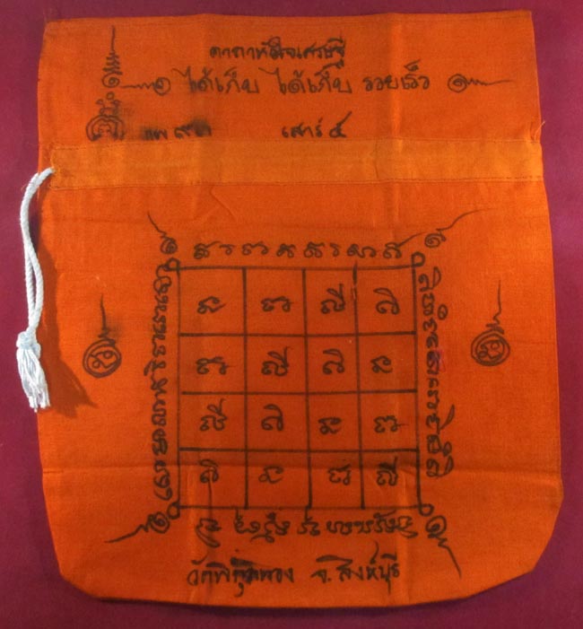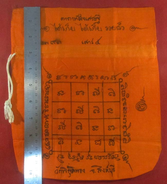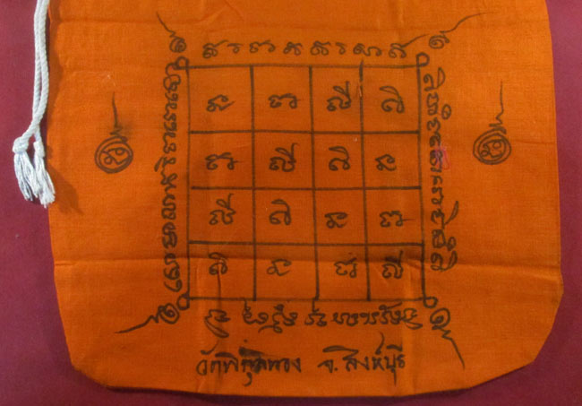 ถุง วัดพิกุลทอง จ.สิงห์บุรี จารยันต์ด้วยมือ ครับ