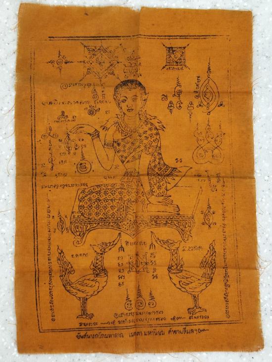 ผ้ายันต์นางกวักเก่า เนื้อผ้าดิบสีส้ม