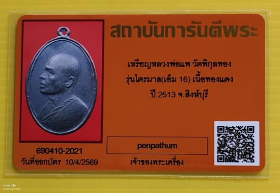เหรียญหลวงพ่อแพ วัดพิกุลทอง พ.ศ.2513 เอ็ม16 + บัตร
