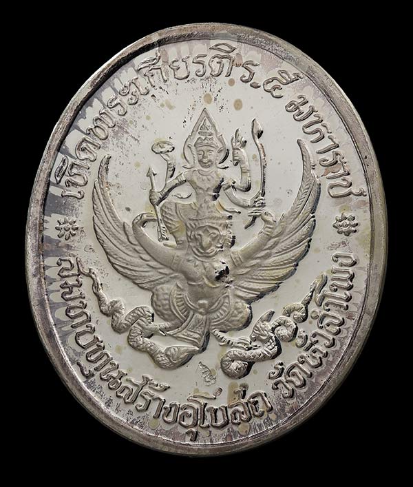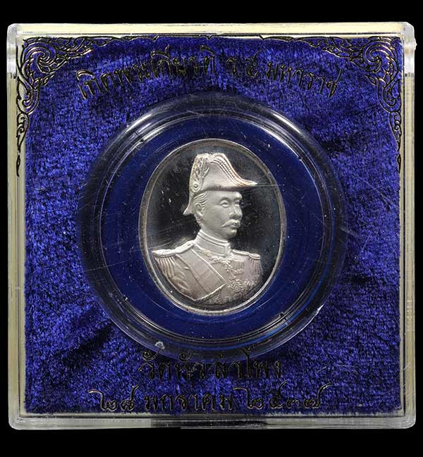 เหรียญเทิดพระเกียรติ รัชกาลที่ 5 มหาราช เนื้อเงิน มาพร้อมกล่องเดิมๆจากในพิธีออกวัดหัวลำโพง หลังพระนารายณ์ทรงครุฑ ที่ระลึกสมทบทุนสร้างอุโบสถ วัดหัวลำโพง กรุงเทพมหานคร หลวงพ่อเกษม เขมโก และเกจิทั่วฟ้าเมืองไทนในยุคนั่นร่วมปลุกเสก 28 มกราคม 2537