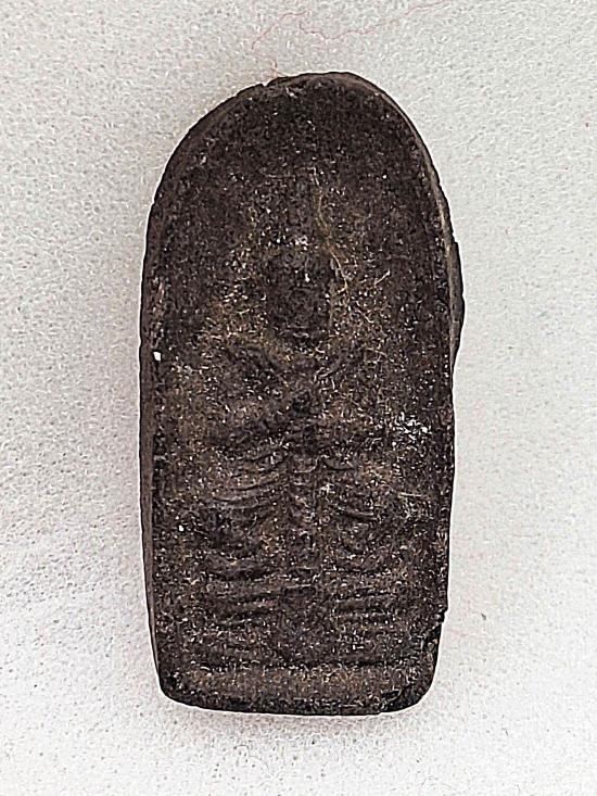 ((วัดใจ))ท้าวเวสสุวรรณ หลวงพ่อทองอยู่ วัดใหม่หนองพะองค์ เนื้อผงใบลาน ด้านหลังยังพอมียันต์ให้เห็นแบบลางๆๆนะครับ |