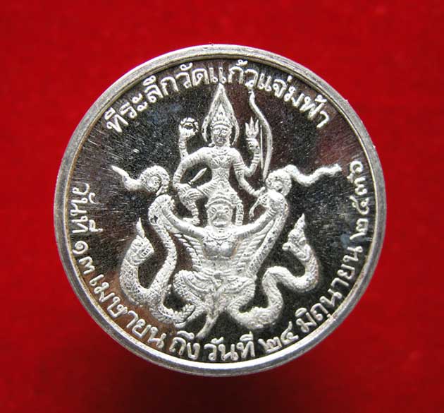 เหรียญเนื้อเงินขัดเงา ร.๕ หลังพระนารายณ์ทรงครุฑ วัดแก้วแจ่มฟ้า ปี๒๕๓๖ ขนาด 2.6 ซม.ผ่านพิธีปลุกเศกใหญ่ ณ วัดแก้วแจ่มฟ้า หายากแล้ว ผลิตน้อย น่าบูชา