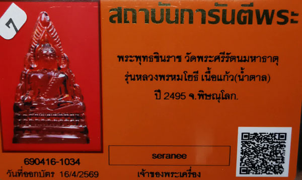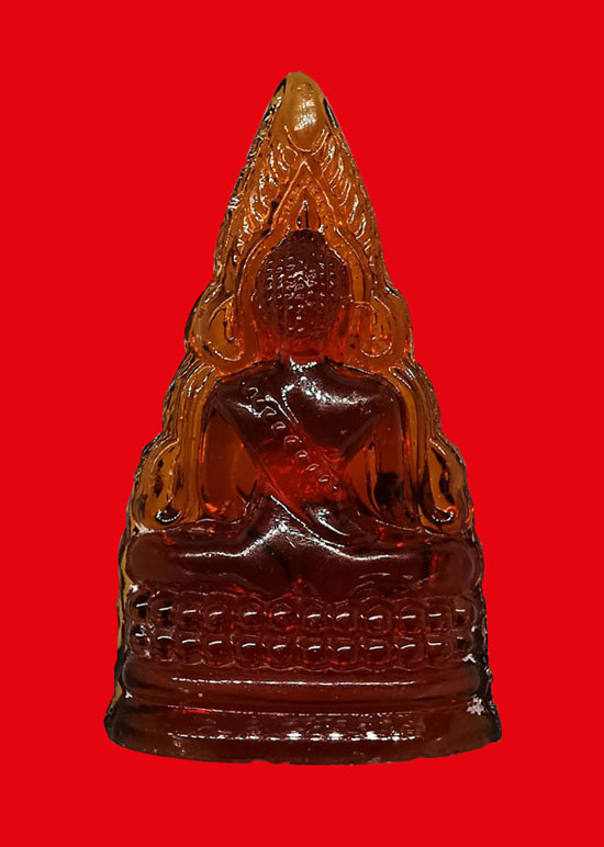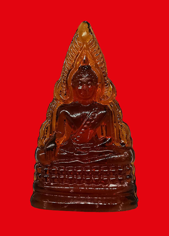 พระพุทธชินราช วัดพระศรีรัตนฯ รุ่นหลวงพรหมโยธี เนื้อแก้ว(น้ำตาล) ปี2495 จ.พิษณุโลก + บัตร G-pra สภาพสวยเดิมค่ะ