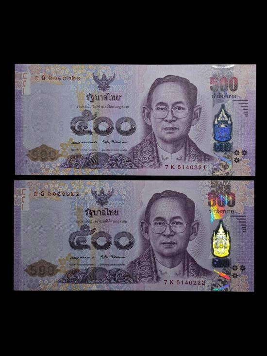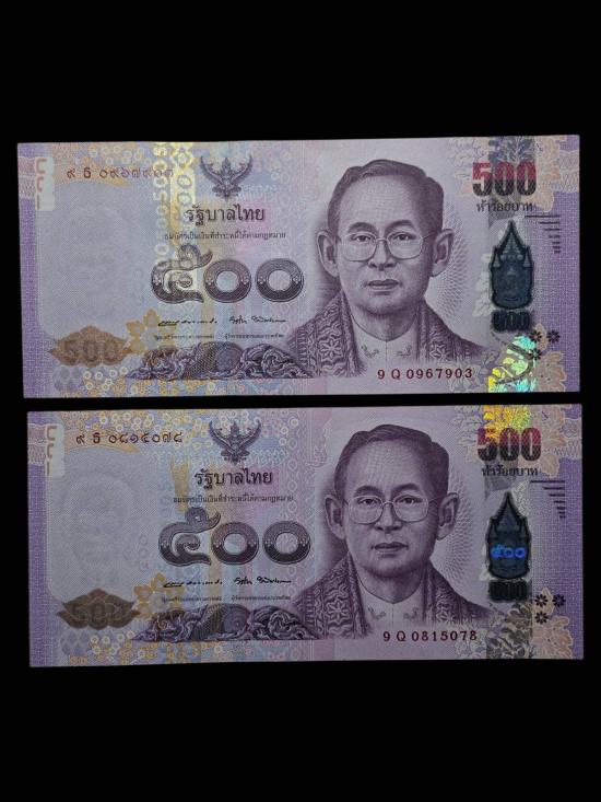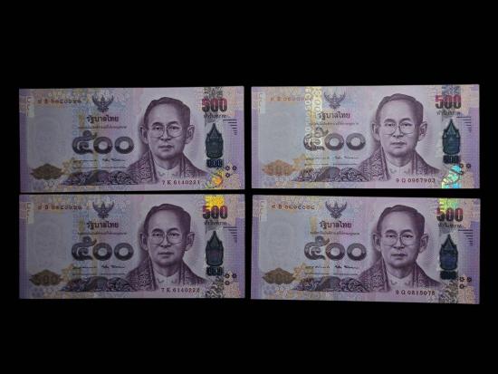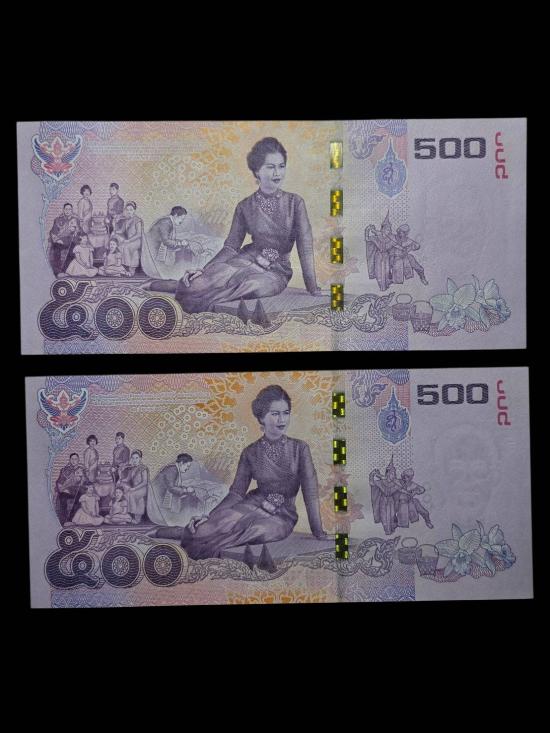 ธนบัตร 500 บาท ไม่ผ่านใช้ (UNC) จำนวน 4 ใบ มูลค่ารวม 2,000 บาท ในหลวงรัชการที่ 9 หลัง พระพันปีหลวง จำนวน 2 ใบ และหลัง รุ่นแบบที่ 16.5 ด้วยสำนึกในพระมหากรุณาธิคุณฯ จำนวน 2 ใบ
