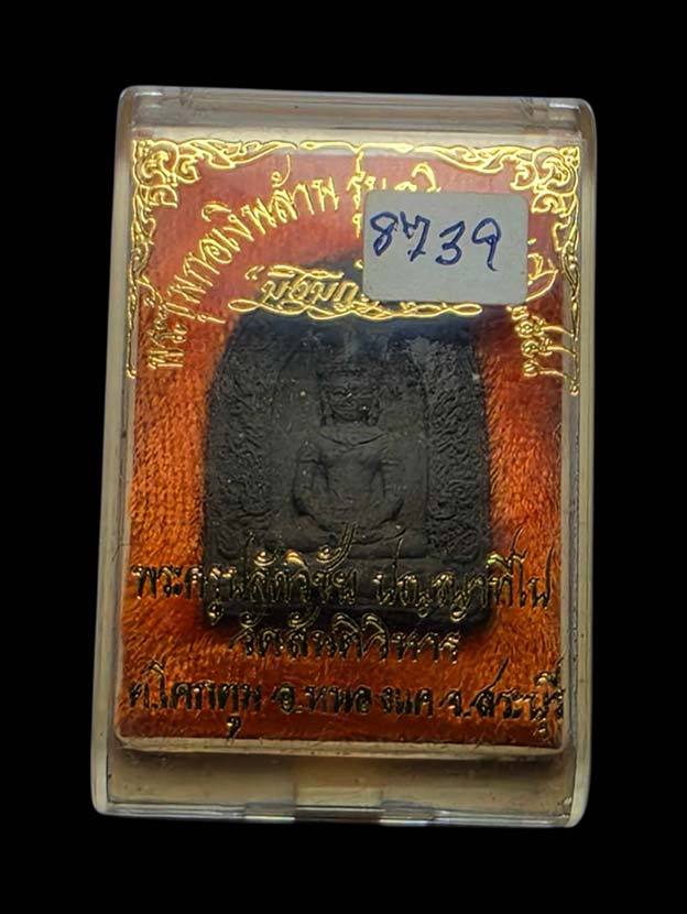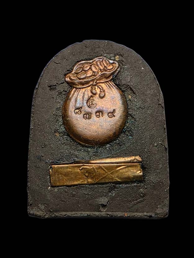 พระซุ้มกอเงินล้าน รุ่นกฐินสามัคคี ปี พ.ศ.2558 ตะกรุดทองแดง หมายเลข 8739 มวลสารดีขอมพันปี หนุนดวงร่ำรวยรุ่งเรือง พระครูปลัดวิชัย วัดสันติวิหาร สระบุรี มีกูแล้วไม่จน พร้อมกล่อง