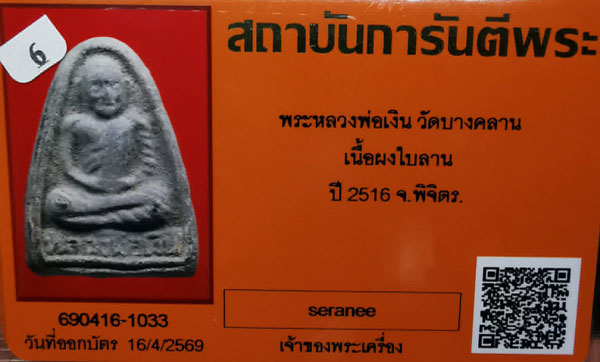 พระหลวงพ่อเงิน วัดบางคลาน เนื้อผงใบลาน ปี2516 จ.พิจิตร + บัตรG-pra สภาพเดิมค่ะ สภาพตามรูปทุกประการค่ะ