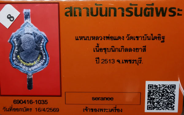 แหนบหลวงพ่อแดง วัดเขาบันไดอิฐ เนื้ออัลปาก้าลงยาสี ปี2513 จ.เพชรบุรี + บัตรG-pra สภาพสวยเดิมค่ะ สภาพตามรูปทุกประการค่ะ