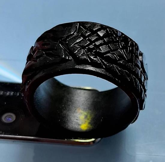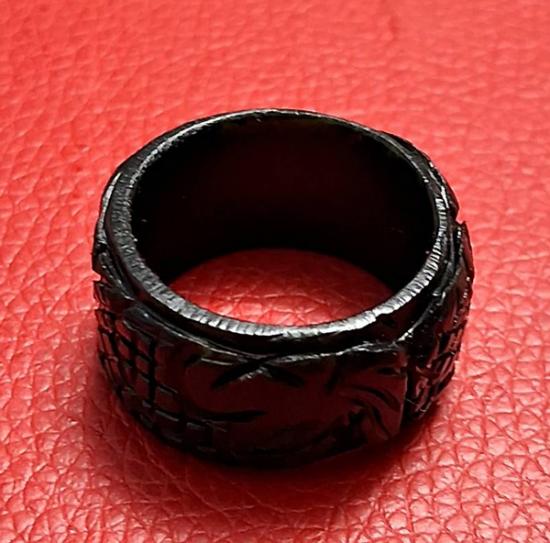 แหวนหยกดำแกะลายมังกร หยกพม่าแท้ 100 % (แสงส่องผ่าน) เส้นผ่าศูนย์กลาง 2.1 ซม. หน้ากว้าง 1.3 ซม. วงใหญ่ๆ หายากและมีราคาค่อนข้างสูง (กท.35) |