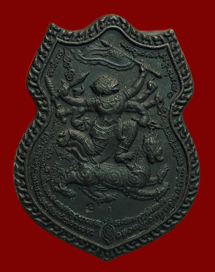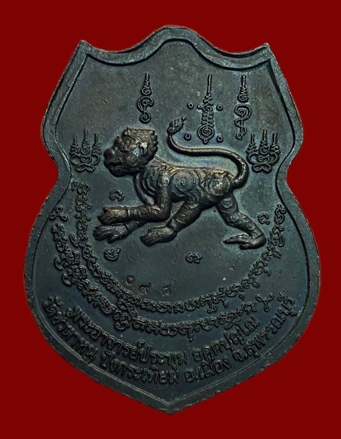 เหรียญหนุมาน ๘ กร ขี่ราชสิงห์ พระอาจารย์ประทุม วัดขรัวตาหนู อ.เมือง จ.สุพรรณบุรี เนื้อทองแดง สวยมาก ตอกโค๊ต และ หมายเลข 98
