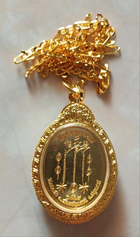 วัดใจเคาะเดียวแดงจ้า เหรียญแปะโรงสี ออกวัดศาลเจ้า เนื้อนวะชุบทองคำแท้99.9 ฝังพลอยนพเก้าเต็มเหรียญ พร้อมสร้อยชุบทอง+ตลับชุดทอง24Kฝ้งเพชร เคาะเดียวแดงจ้า