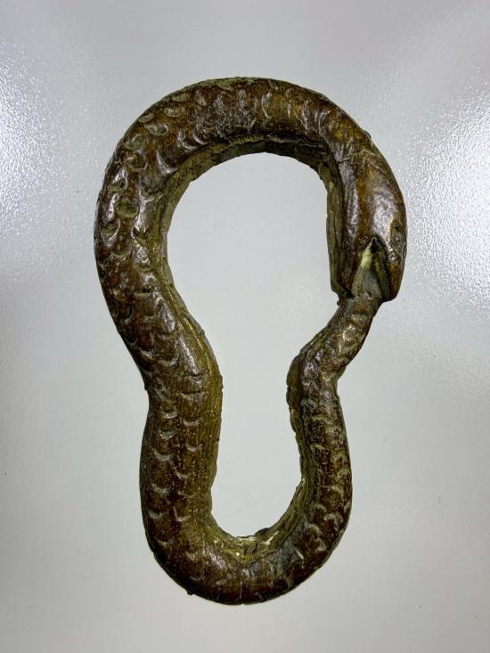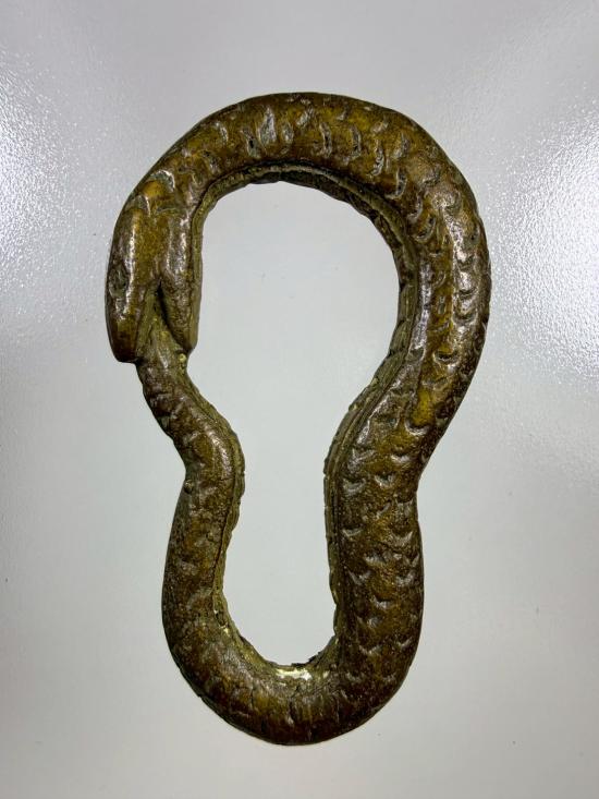 เคาะเดียว 220 งูกินหาง เลข8 เครื่องรางสายโชคลาภโบราณ เนื้อโลหะ ขนาดประมาณ2นิ้ว ไม่ทราบที่