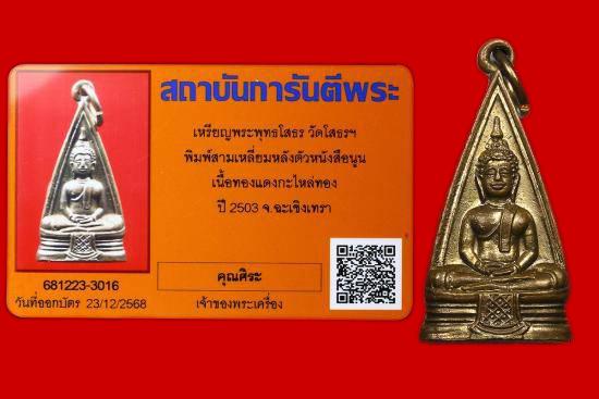 ""สภาพสวย"" ปี2503 (บล็อคนิยม พระราชเขมากร นูน) หลวงพ่อโสธร 'พร้อมบัตรG' ขายวัดใจไปทุกรายการ