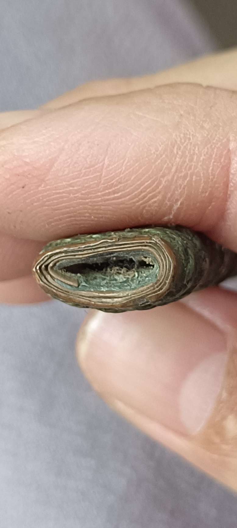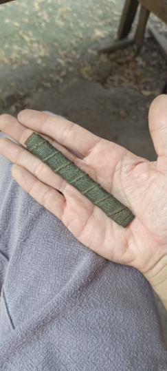 ตะกรุดถักเชือกเก่าไม่ทราบที่ ลักษณะแบนเหมือนโดนทุบ เชือกเก่าเป็นเชือกล่ำควายเก่า ท่านไหนทราบที่เคาะปิดได้เลยครับเคาะเดียวแดงไม่แพง