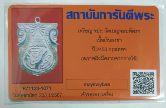 เหรียญ จปร. วัดเบญจมบพิตร เนื้อเงินลงยา พ.ศ.2453 พร้อมบัตรรับรอง