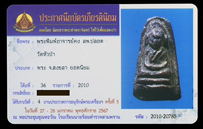พระเนื้อว่านรูปเหมือนอินโดจีน"พิมพ์หลวงพ่อคง"หลวงพ่อปลอด วัดหัวป่า จ.สงขลา ปี๒๔๘๕.."พิมพ์นิยมหูประบ่า"..ช็อคโกแลตตัวจริงยุคต้นเข้มข้น"..เนื้อจัดเข้มข้นโซนนิยมเนื้อช็อคโกแลต..สภาพสวยเดิมๆอย่างหนาๆ..เนื้อจัดจ้านมีร่องรอยความเก่าตามอายุ..จัดสร้างโดยหลวงพ่อปลอด วัดหัวป่า พระเกจิอาจารย์ผู้เรืองวิทยาเวทย์แห่งจังหวัดสงขลา..โดยหลวงพ่อปลอด ท่านได้สร้างขึ้นเพื่อรำลึกนึกถึงพระคุณอาจารย์ของท่าน..ซึ่งหลวงพ่อปลอดท่านเริ่มสร้างมาตั้งแต่สมัยสงครามโลกครั้งที่ ๒ และ สงครามอินโดจีน (รุ่นอินโดจีน)โดยได้แจกจ่ายให้ศิษย์นำติดตัวไปเพื่อป้องกันตัวในราชการสงครามครั้งนั้นถือได้เลยว่ารุ่นนี้สุดยอดประสบการณ์มากมายคนที่นำไปบูชาต่างบอกเสียงเดียวกันว่าดีครับพุทธคุณพระพิมพ์นี้มีความแคล้วคลาดคงกระพัน และเป็นยาแก้อสรพิษ..(ปัจจุบันมีของเลียนแบบมีมากมายหลายๆฝีมือ)..สำหรับองค์นี้เนื้อหาจัดจ้านและค่อนข้างใหญ่จัมโบ้ก็ว่าได้และอย่างหนา..สภาพสวยเดิมเก่าเก็บอย่างดีมีหน้าตา..ที่สำคัญเนื้อหาจัดจ้านยุคต้นเนื้อจัดเข้มข้นโซนนิยมช็อคโกแลตแบบนี้นานๆเจอหายากมากแล้ว..สายตรงตัวจริงเค้ารู้กันดี..**ไม่เจอเนื้อคู่ถือว่าโชว์ครับ..องค์นี้ที่สุดแล้วเท่าที่ผ่านมือผ่านตา..ปัจจุบันเลี่ยมพลาสติกเก็บรักษาสภาพไว้เรียบร้อย..**..ของแท้ตัวจริงเนื้อแบบนี้ราคาไม่ถูกนะครับ..พร้อมรางวัลงานประกวดที่รับรองโดยสมาคมพระเครื่องฯ ณ.โรงเรียนนายร้อยสามพรานครับ***รับประกัน***