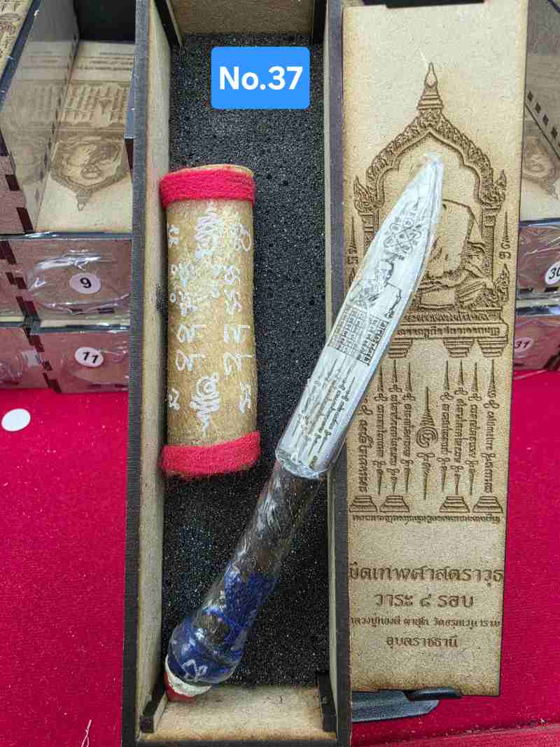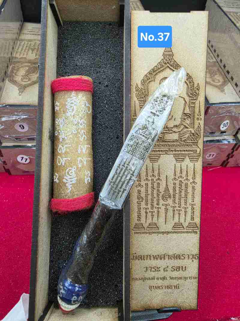 มีดหมอหนังช้างแท้ 2หน้า ลาย หลวงปู่ทองดี+สำเร็จลุน No.37 วาระ 8 รอบหลวงปู่ทองดี จังหวัดอุบลราชธานี พร้อมกล่องไม้เดิมๆ |