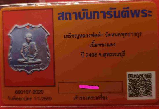 เหรียญรุ่นแรก หลวงพ่อคำ วัดหน่อพุทธางกูร ปี 2498 เนื้อทองแดง สวยผิวเดิม พร้อมบัตรการันตีพระ