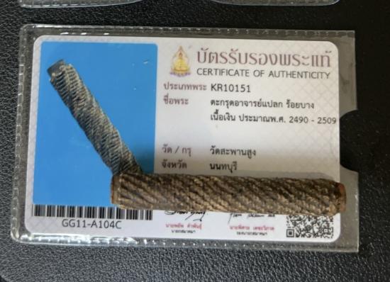 ชื่อพระเครื่อง ตะกรุด อ.แปลก ร้อยบาง ฆราวาสสายวัดสะพานสูง เนื้อเงิน พร้อมบัตรสมาคม