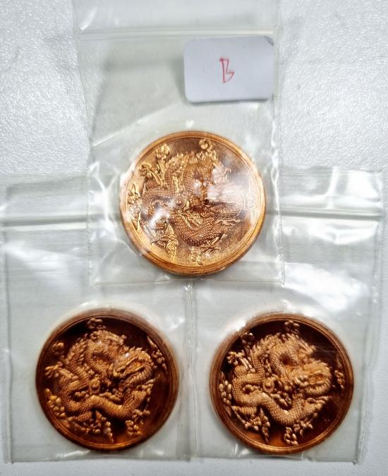 เหรียญพญามังกรทองจักรพรรดิ์ วัดไตรมิตรวิทยาราม เนื้อทองมหาชนวน4หรียญ (B)