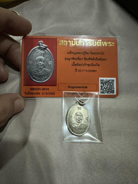 เหรียญผูกพัทธสีมา คอสั้นยันต์แตก เนื้อปาก้าชุบนิกเกิลปี 2517 พร้อมบัตร