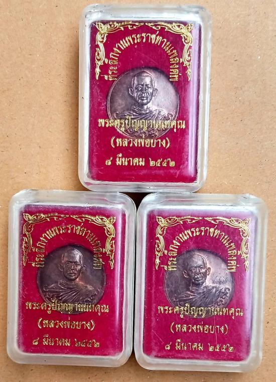 เหรียญหลวงพ่อบาง วัดสโมสร นนทบุรี เจ้าตำรับผ้าขอดเเดงอันลือลั่น พิมพ์กลมครึ่งองค์ เสาร์5 ปี2536 ที่ระลึกงานพระราชทานเพลิง...เนื้อทองแดงผิวไฟ สภาพสวยเดิมๆ 3 เหรียญพร้อมกล่อง...รุ่นนี้ทันท่านปลุกเสก!