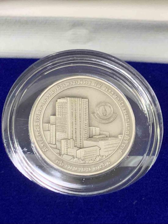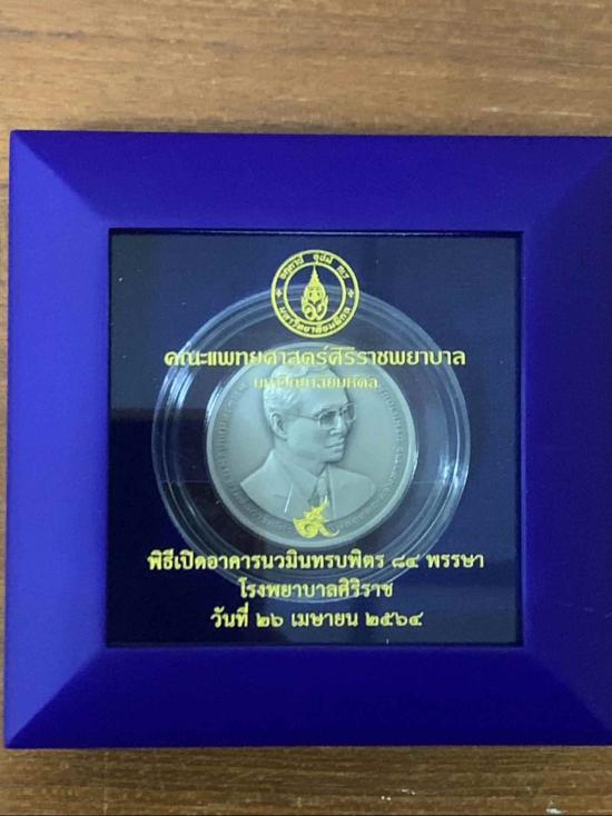 เหรียญที่ระลึกพิธีเปิดอาคารนวมินทรบพิตร 84 พรรษา โรงพยาบาลศิ ริราช เนื้อเงินพ่นทราย ขนาด 3 เซ็น 2564 พร้อมตลับ
