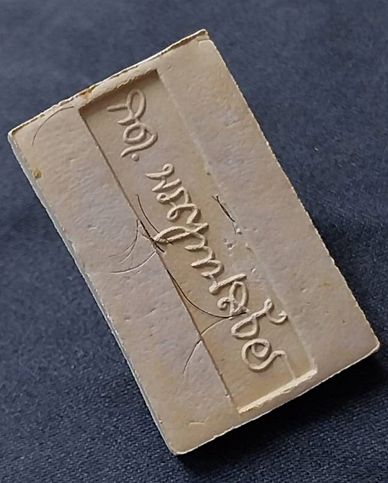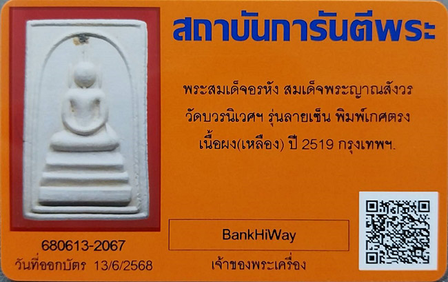 ด้านหลังองค์พระมีชื่อของเจ้าประคุณสมเด็จพระญาณสังวรและเส้นเกศาของท่านบรรจุอยู่