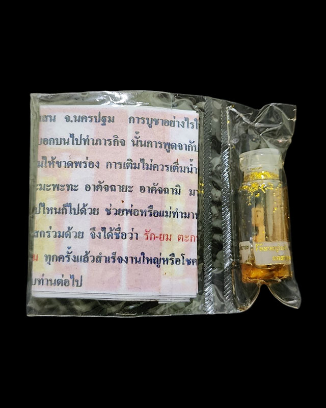 รักยมหลวงปู่แผ้ว วัดกำแพงแสน นครปฐม (น้ำมันไหลออกมานอกขวด) |