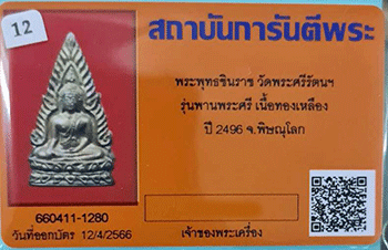 พระพุทธชินราช วัดพระศรีรัตนฯรุ่นพานพระศรี เนื้อทองเหลือง ปี 2496 จังหวัดพิษณุโลก พร้อมบัตรรับรอง