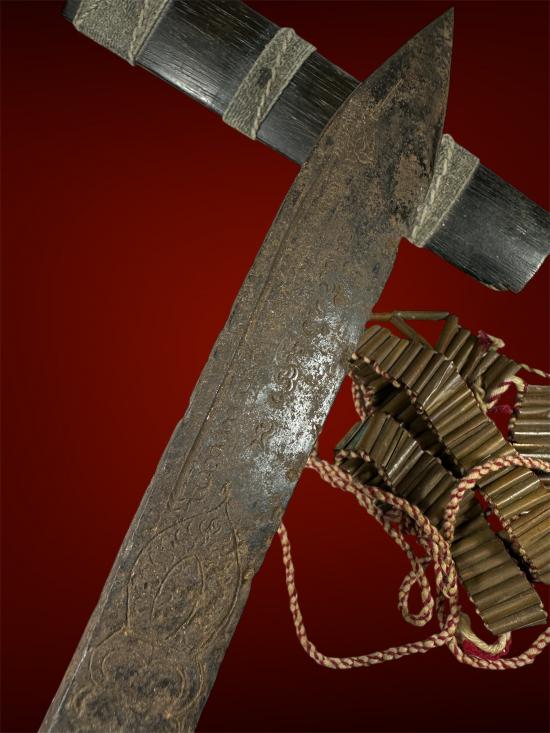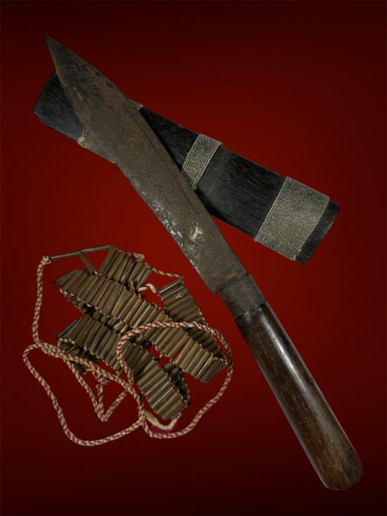 ชื่อพระเครื่อง มีดหมอ ขนาด 12 นิ้ว + ตะกรุดถักเอว 108 ดอก พระบ้าน เก็บเก่า