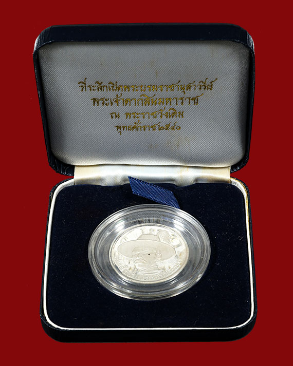 ***เนื้อเงิน***เหรียญเงินขัดเงาสมเด็จพระเจ้าตากสิน ที่ระลึกเปิดพระบรมราชานุสาวรีย์ ณ พระราชวังเดิม พร้อมกล่องเดิม