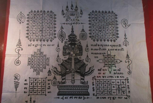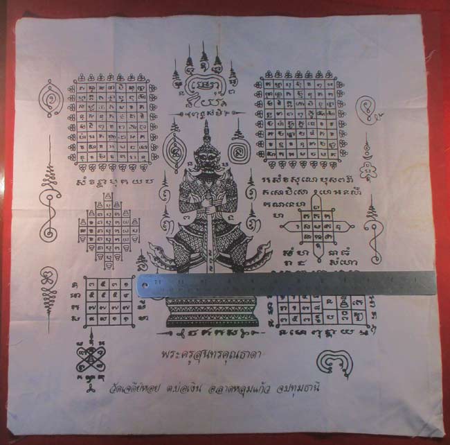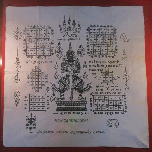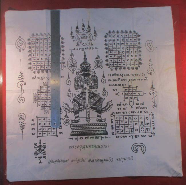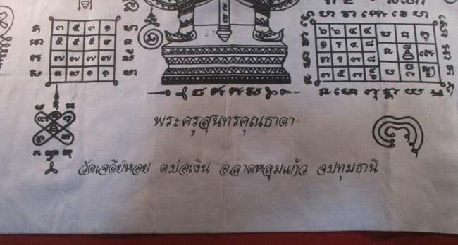 ผ้ายันต์ ท้าวเวสสุวรรณ พระครูสุนทรคุณธาดา วัดเจดีหอย ต.บ่อเงิน ต.ลาดหลุมแก้ว จ.ปทมธานี ครับ (พระบ้าน ครับ)
