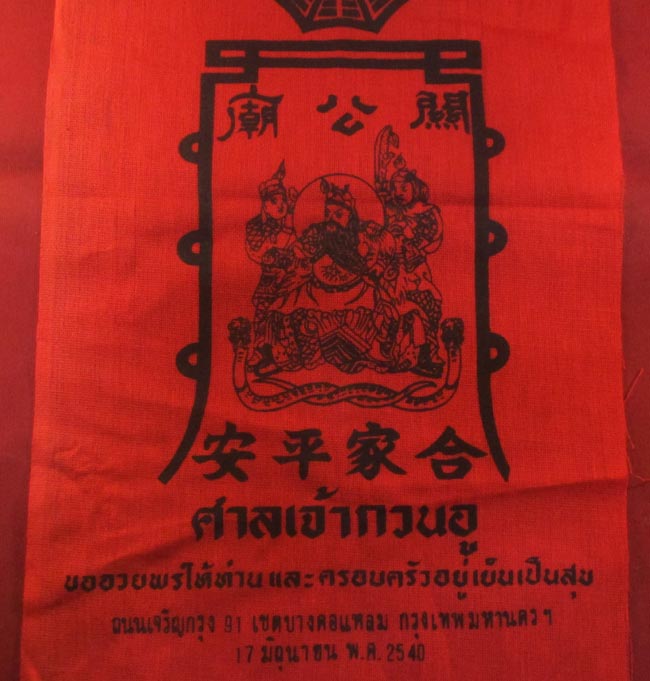 ผ้ายันต์ ศาลเจ้ากวนอู กรุงเทพ ครับ (พระบ้าน ครับ) |