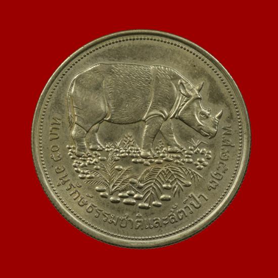 เหรียญกษาปณ์ที่ระลึก ในหลวง ร.9 "อนุรักษ์ธรรมชาติและสัตว์ป่า" (กระซู่) ปี2517 เนื้อเงิน (ขนาด 3.8 ซม หนัก 25 กรัม) สวยเดิม