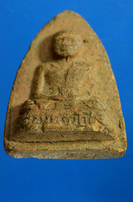 พระพิมพ์รูปเหมือนหลวงพ่อเปลี่ยน วัดใต้ (ไชยชุมพลชนะสงคราม)จ.กาญจนบุรี เนื้อดินหลังยันต์ จัดสร้างปี๒๕๐๐