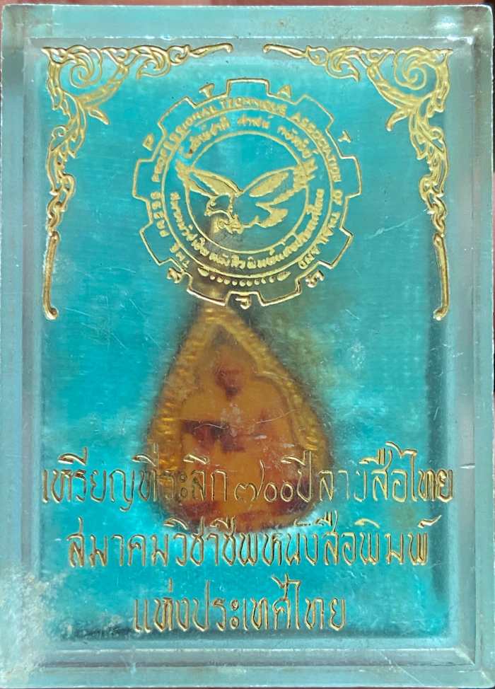 ล็อกเก็ตที่ระลึก700ปี ลายสือไทย พระขุนรามคำแหงมหาราช ด้านหลัง พระประจำวันอาทิตย์ สมาคมวิชาชีพหนังสือพิมพ์แห่งประเทศไทย