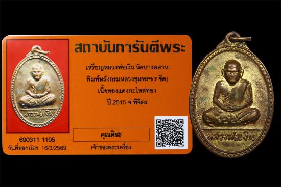หลวงพ่อเงิน บางคลาน หลังกรมหลวง "ร.ขีด กะไหล่ทอง นิยมสุด " พร้อมบัตรG