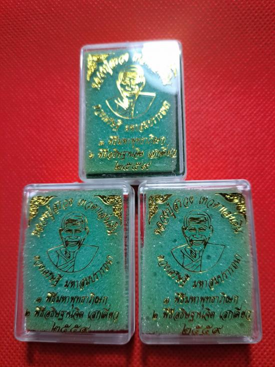 พระผงดวงเศรษฐี มหาสมปรารถนา หลวงปู่สรวง เทวดาเล่นดิน ฝังจีวรหลวงปู่สรวง และจีวรหลวงปู่หมุน วัดบ้านจาน จัดสร้างปี 2559 เคาะเดียว 3 องค์