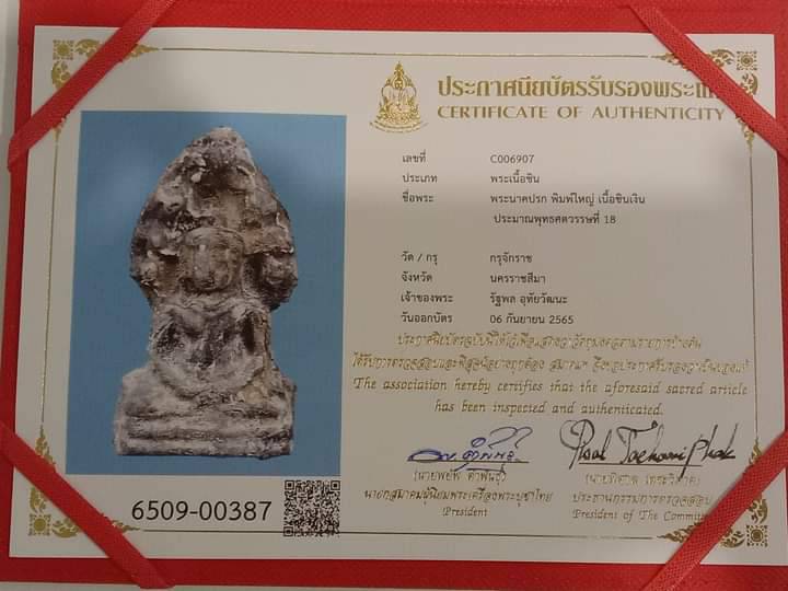 @@พระนาคปรก พิมพ์ใหญ่ เนื้อชินเงิน กรุจักราช (กรุประกายเพชร)อายุ 800กว่าปี พุทธศตวรรษที่ 18 จังหวัด นครราชสีมา เดิมๆจากกรุ พร้อมบัตรรับรองสมาคมพระเครื่องพระบูชาไทย @@@@