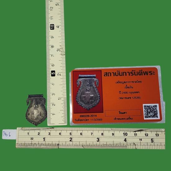 เหรียญ เนื้อเงิน สภากาชาติไทย พ.ศ.2495 สภาพสวยตามรูป พร้อมบัตรการันตีรับรอง