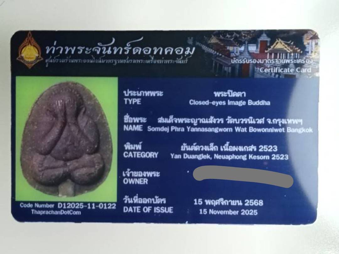 บัตรรับรองพระแท้จากชมรมพระเครื่องท่าพระจันทร์