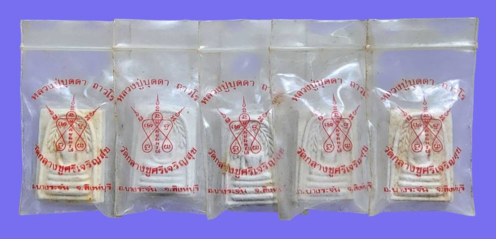 ( 5 องค์ )พระสมเด็จปรกโพธิ์หลังรูปเหมือนนั่งใบโพธิ์หลวงปู่บุดดา ถาวโร วัดกลางชูศรีฯ จ.สิงห์บุรี สภาพสวยซองเดิมๆครับ