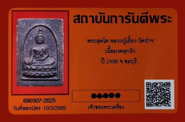 พระสุคโต หลวงปู่เฮี้ยง วัดป่า เนื้อผงคลุกรัก ปี2498 จ.ชลบุรี พร้อมบัตรG...