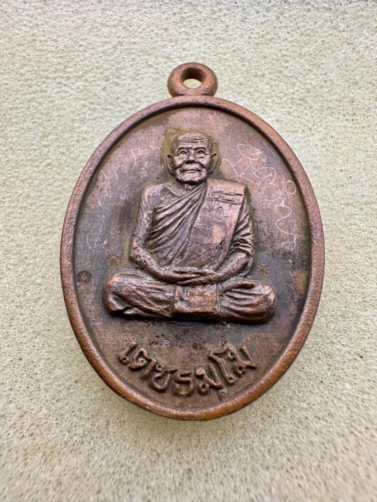 เหรียญหล่อรุ่นแรก หน้าหลวงพ่อทวด หลังหลวงปู่เกลี้ยง หลวงปู่เกลี้ยง วัดโนนแกด ( เนื้อทองแดงเถื่อน 3โค๊ด จารย์มือ 4จารย์เต็มๆ เลข 627)
